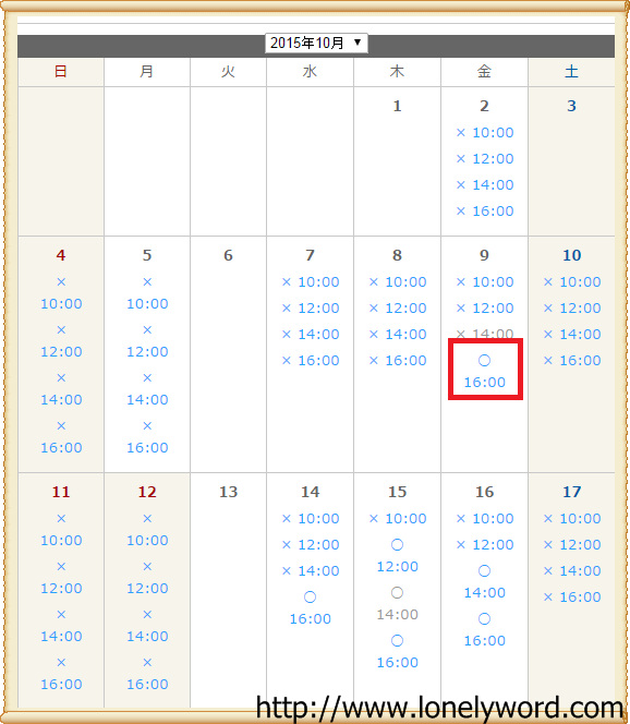 往下可以看到日期和时间,打X的是不能预约的,打O的是可以逾越的