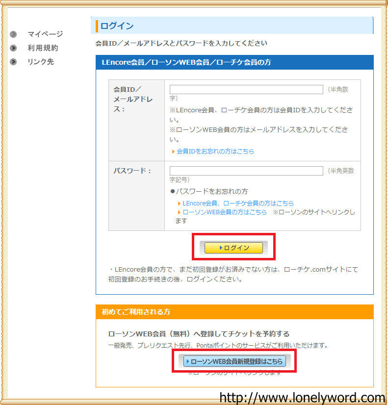 然后输入Lawson的会员ID和密码,点击黄色按钮,如果没有Lawson会员帐号,则可以点击下方蓝色按钮注册